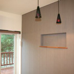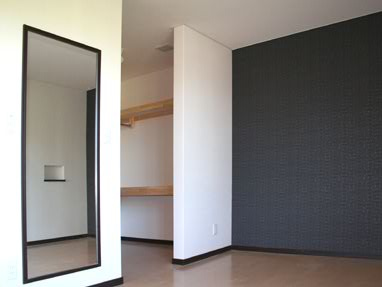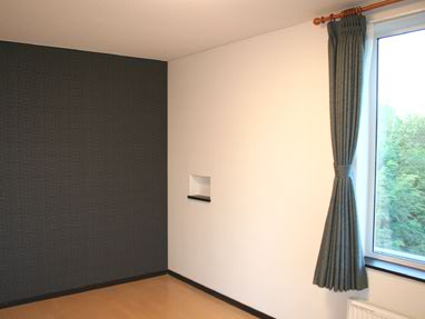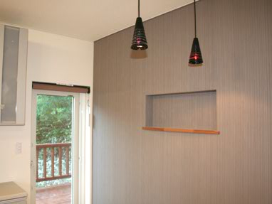 緑に囲まれた家には上質な壁紙と灯りをそえて。