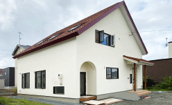 ~子育て世帯の2階建て住宅~ 建物のメンテナンス費用軽減 屋根:アスファルトシングル[高い耐久性と独特の意匠性] 外壁:アートパレモルタル[抜群の意匠性と群を抜く優れた耐久性] 玄関屋根:ミラノルーフ[天然石とガルバニウム鋼鉄の長持ちするロングライフ屋根材] 建物の高性能化による…